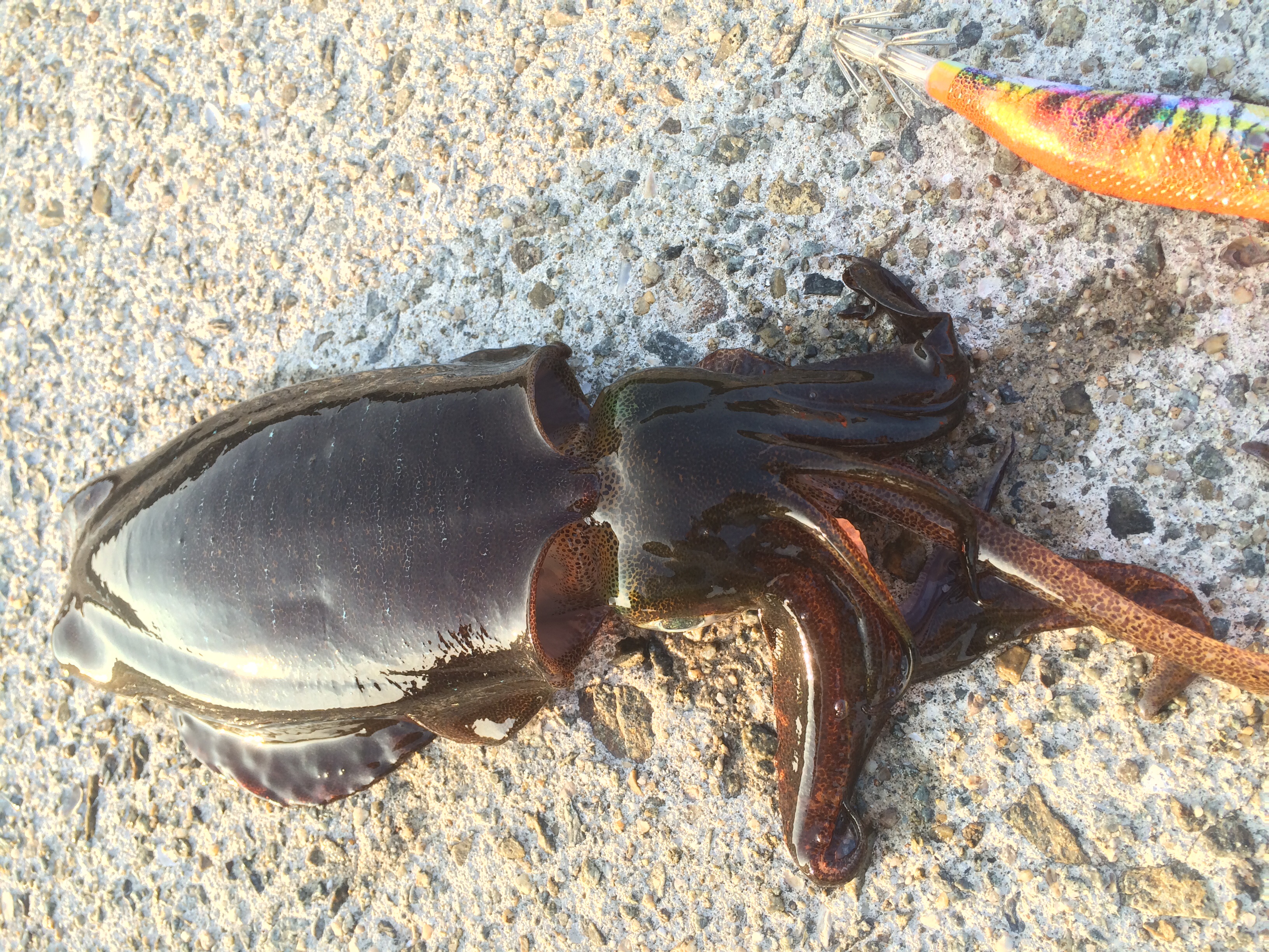 着底したら秒数を数えてステイの時間を調節してみるのが私のやり方。5秒で乗ってくる時もあれば30秒待つこともあり、60秒の時もある。アタリは触腕でタッチする時はラインが動いたりしてわかりやすいがわからないことが多い。時々ラインを張ってみて重さを確かめたりすると乗っていたりする。