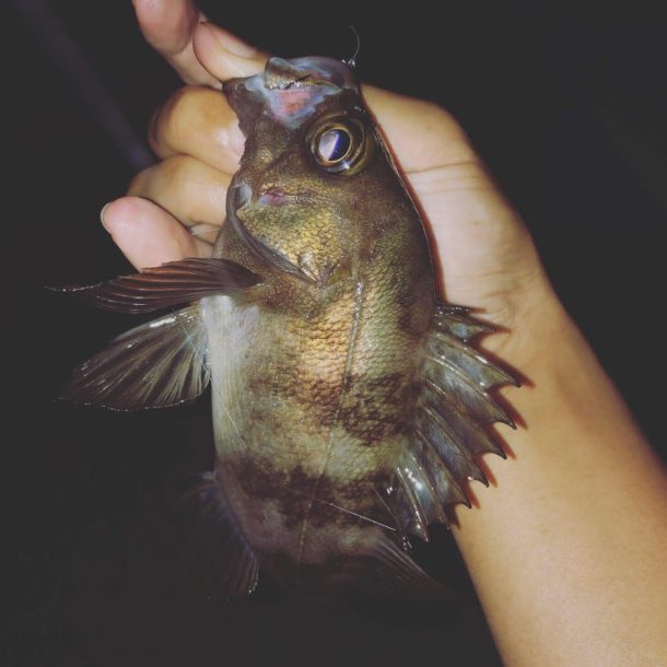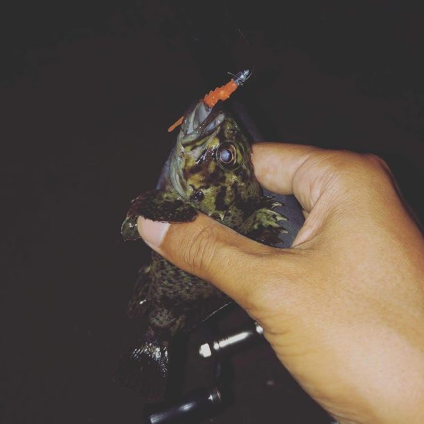 数は出ないが釣れるといい感じで、ソイとメバルを連続で仕留めることが出来た。これは足元の暗いところにフォールさせてたら食ってきた。