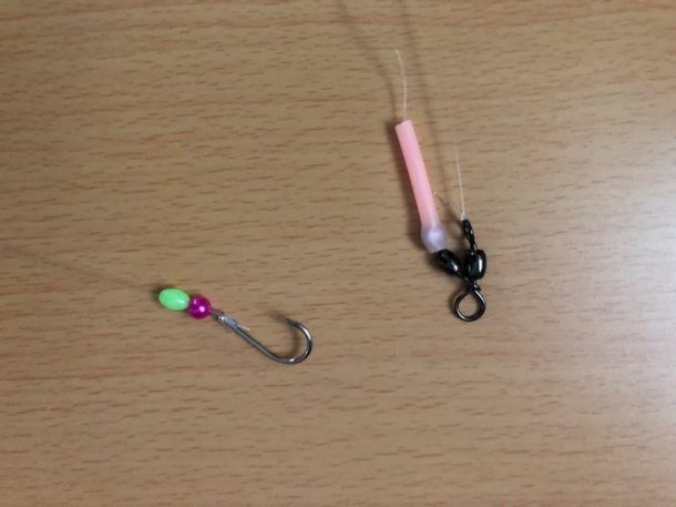 重りはとりあえず15号を使ってみたが、10号程度でも良いだろう。ナス型重りでも良いが潮の流れがあるところは六角重りのほうが安定すると思う。