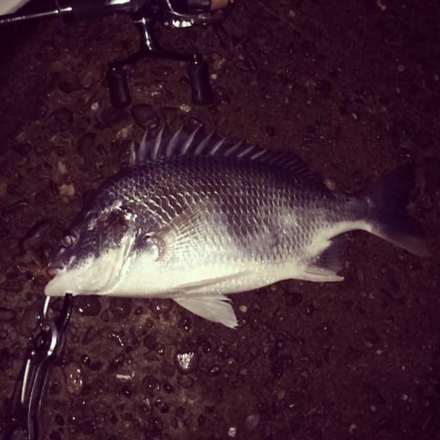 もう無理かなと思い始めていた時、やっと乗った。手応えはかなり強烈でドラグも出す強い引き!かなりのスリルを味わいゲット出来た。真チヌの良型でした。