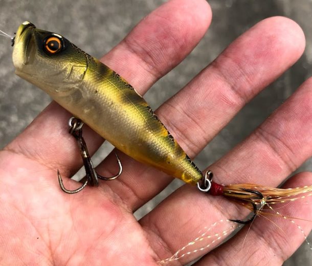 小魚が結構いるところがあり、これは出そう…と思いながらポッパーを動かしているといい感じの出方で食ってきた!