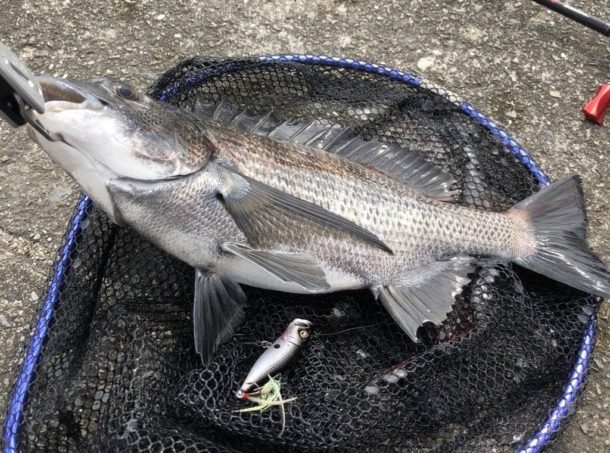 かなりいい感じの魚体の真チヌ。なんか最近トップで釣ると真チヌばっかりである。