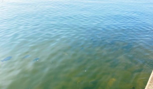 川の中を見るとチヌがウロウロしているのが確認出来てその数は異常な数と言っても過言ではないレベルの密集。ボラみたいに集合しているところもある。