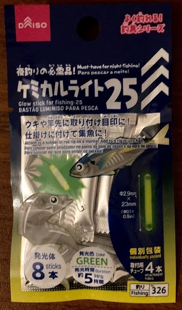 コメントでワームに刺せるケミホタルがあるとのことでダイソーに行ってみたらちゃんとありました…。