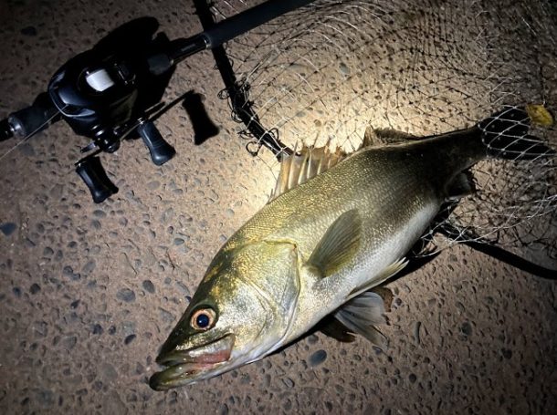 やる気のない引きだったが足元に寄せてきたら急に元気になるタイプで何回突っ込むの?ってぐらいずっと突っ込みまくり疲れる…。ネットインして上げてきたがむちゃくちゃ重い魚でお腹パンパンの極太シーバス。サイズは普通サイズだったが秋の荒食いシーバスゲットできて気持ちが良かった。