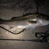 この魚を上げた次の一投もほぼ同じ場所をほぼ同じ速度で通した瞬間ヒット。サイズ的に50センチぐらいのそうでもない魚だったが跳ねまくってバラシ。