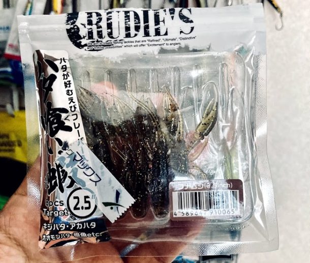 一本釣れたのでリトルスパイダーからこの日マックスで購入したザリガニ系ワームに変更。安くて釣れそうな感じがする。ハタコーナーに売っていた。