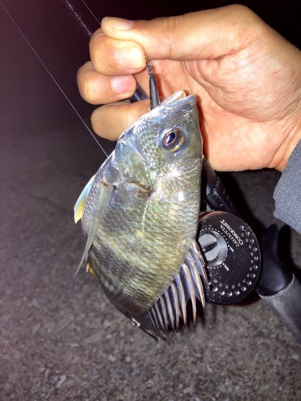 暗くなってチヌのアタリが消えたのも底にいる固い甲殻類食うより中層を泳ぐバチ食ったほうが簡単に腹一杯になるから偏食してる気がする。