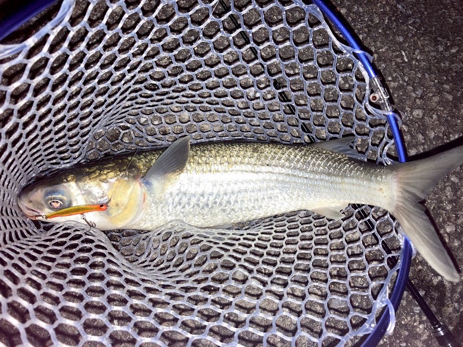 想像通り完璧にボラでしかもでかい。マジででかすぎてやばい…。しかもパワフル…。ガッツリ口で食っているが本当になんでこんなに引くの?ってぐらいパワフルな引きをする。寄せては出されるを繰り返しでかいチヌの10倍は時間をかけてやっとネットイン…。