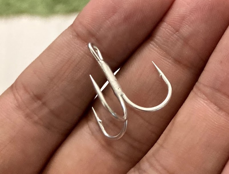 それがこのフックの場合は両側に1本ずつフックが来るためルアーのバランスが崩れにくい。