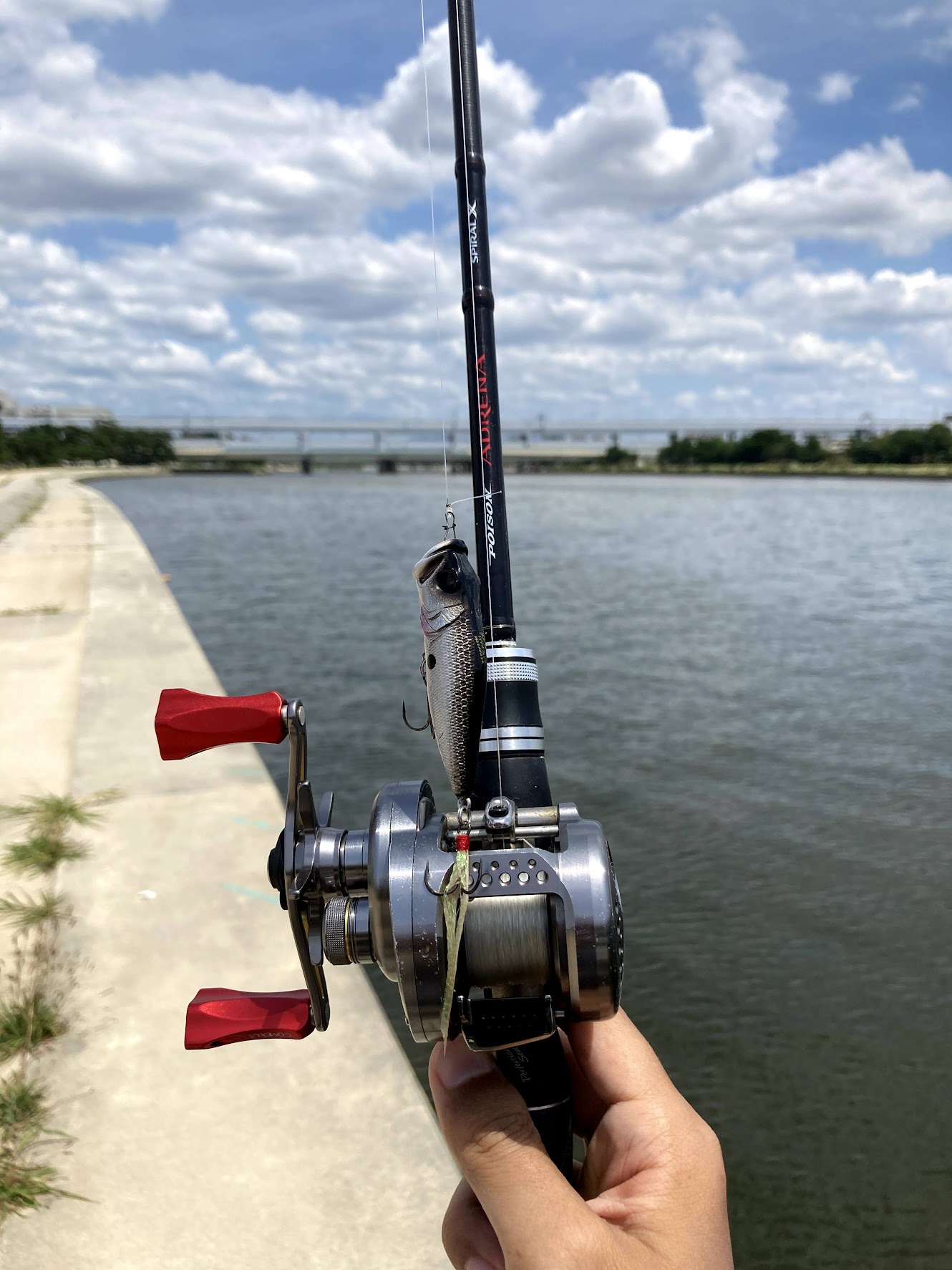 武庫川で釣りを始めて30年近く経つのですが、私が小さい時からブラックバスはたくさんいて人生初ブラックバスも武庫川でした。ただ、最近は河川改修工事のパワーでワンドが無くなり、洪水のたびに大量の土砂が流れてきて深い場所も無くなり、可動堰が開きっぱなしで下流のバスもいなくなったと思っていました。