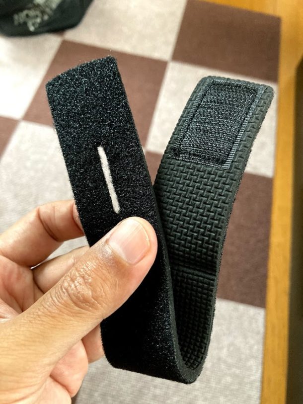 そして外そうとするが無茶苦茶マジックテープが深く食い込んでいて外しにくいことこの上ない。片手じゃ無理で両手で引っ張らないと外しにくい。こんなに外しにくくする必要はないのでこの時点でリピートは無しに確定。