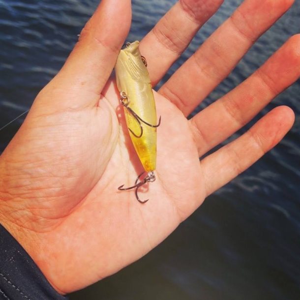 ルアーを確認してみたが、フロントに付けてあったバス釣り用のトレブルフックは一本引きちぎられて一本は完全に伸ばされていた…チヌ釣りに細軸は絶対あかんね…。