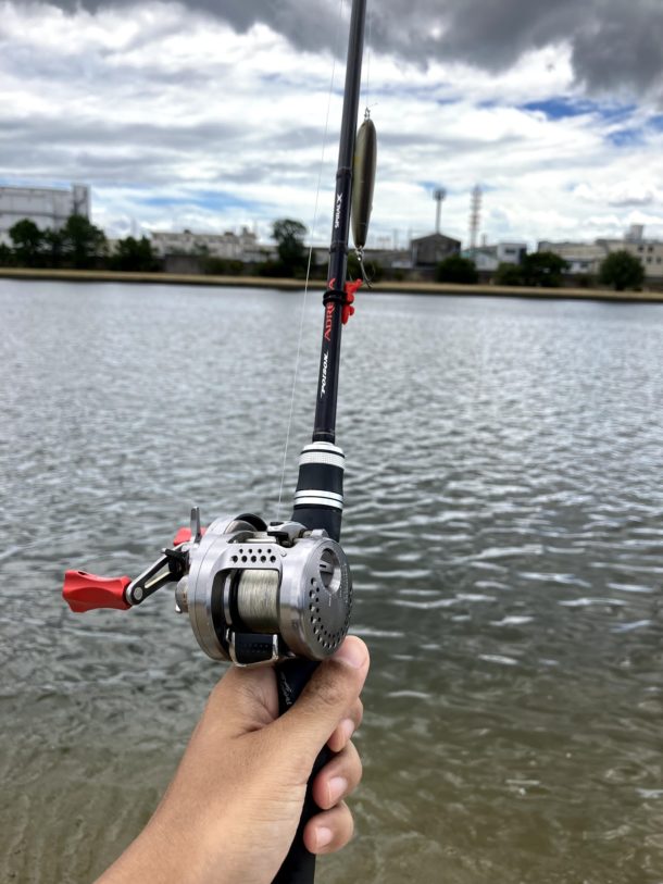 風も強すぎて狙ったところへ行かないレベルだし、風上に投げたら速攻でひどいバックラッシュ…。ラインが20メートルぐらい失われやる気も失われて試合終了。まだまだ往復すれば出たとは思うが…。