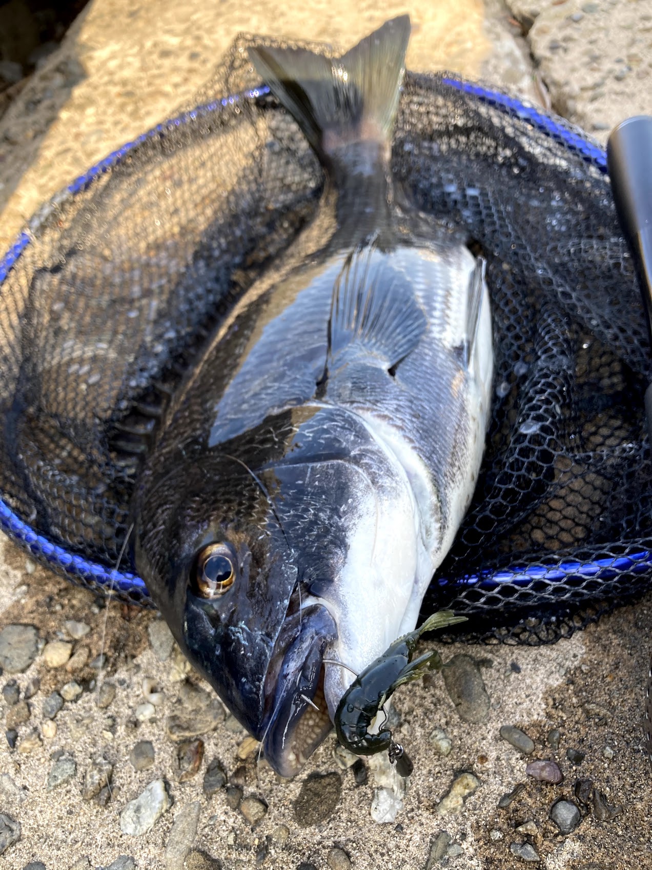 明らかにでかくていい魚だったのだが先程のキビレほどは引かず、すんなりキャッチ。サイズは50センチには足りないというかなりいいサイズだった。