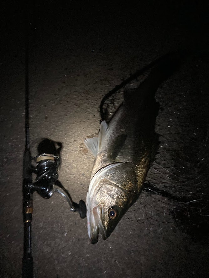 同じく無茶苦茶元気で何回寄せても出される疲れるファイト…。なんとか浮かしてきて慎重にネットイン。信じられないぐらい重いシーバスを引き上げる…。