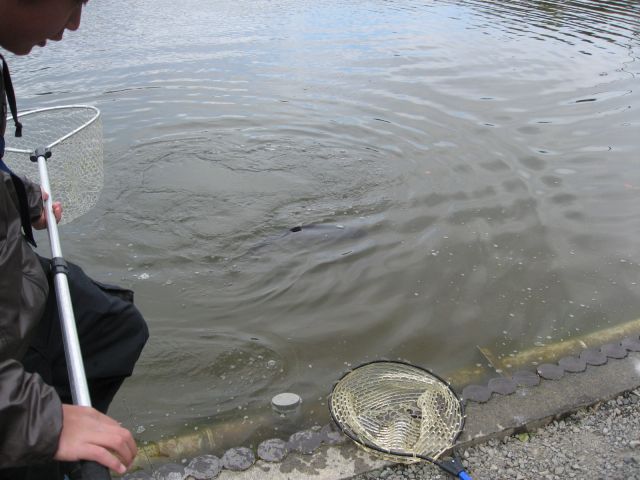 って思てたけど意外にも魚は全く走らずに隣で釣りをしていた少年の差し出したネットにおさまった。