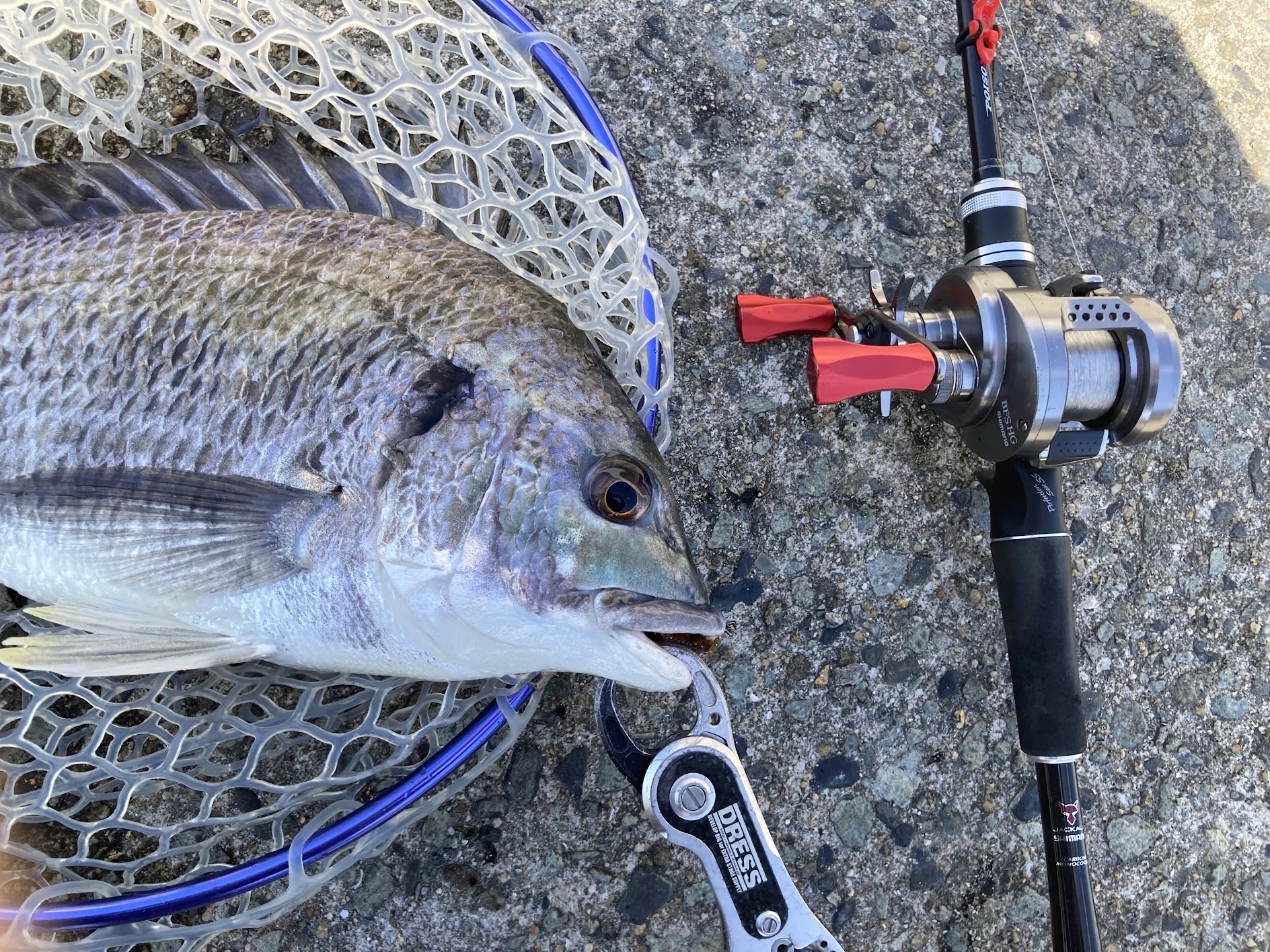 引きは弱かったが5バラシ後のナイスサイズキビレゲットは非常に嬉しい。