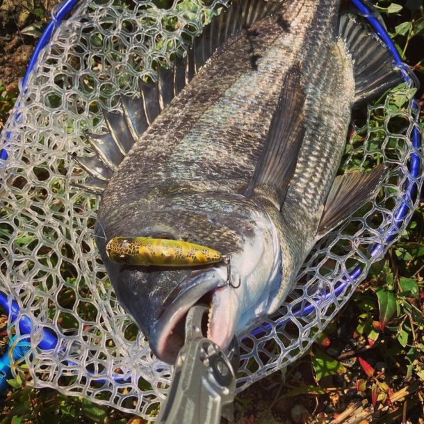 ルアーはチヌ用ポッパーやペンシルでもいいし、ブラックバス用のトップウォーターでもいい。ジタバグやらクレイジークローラーみたいなタイプのルアーでも釣れているので本当になんでもいいと言える。夏場はセミを食べたりするのでポッパーが良いだろう。