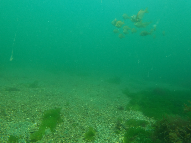 ちょい投げでキスを釣る予定だったのだがゴープロを沈めて底を確認すると海藻がびっしり生えていてズル引き不可能である事が判明…。一応投げてみたが海藻に埋もれた餌を発見してくれる魚などおらず餌が全く無くならない…。