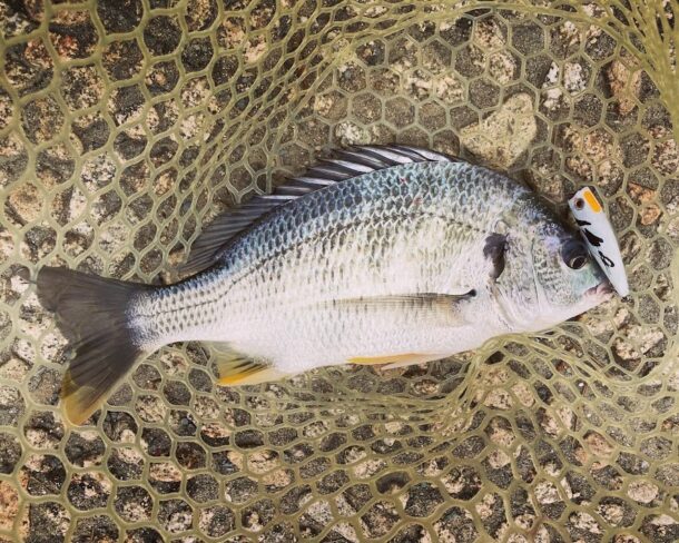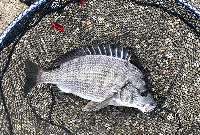 遠目でヒットしたのでかなり引きを味わいつつ慎重にやり取りして動かなくなってからネットへ。後ろフック1本だったのでかなり危なかったが初っ端からゲットできてラッキー。