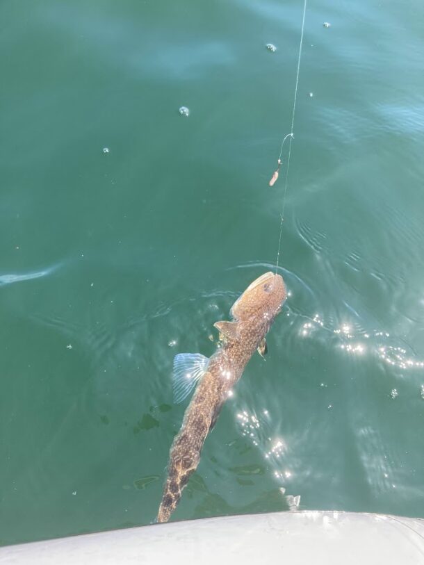 船が動かないようにアンカーを打っているので流石に足元だけでは釣れないようになり、ちょい投げする。