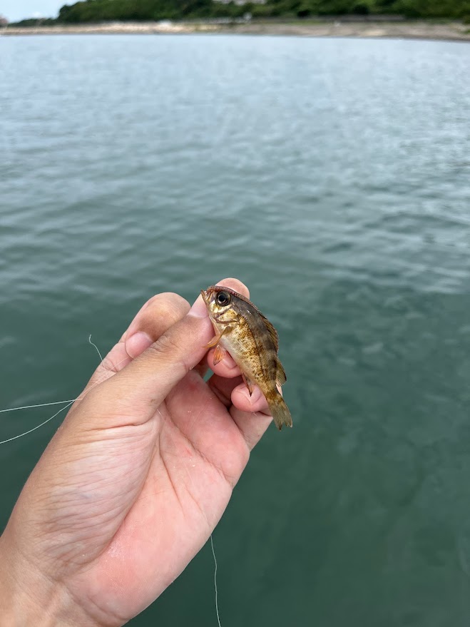 この防波堤裏スポットが意外と魚たくさんゾーンだったようでジャリメでベラが連発。友人はクサフグを連発という楽しい状況に。