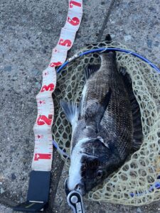 なかなかの引きを味わってゲットしたのが40ぐらいのチヌ。
