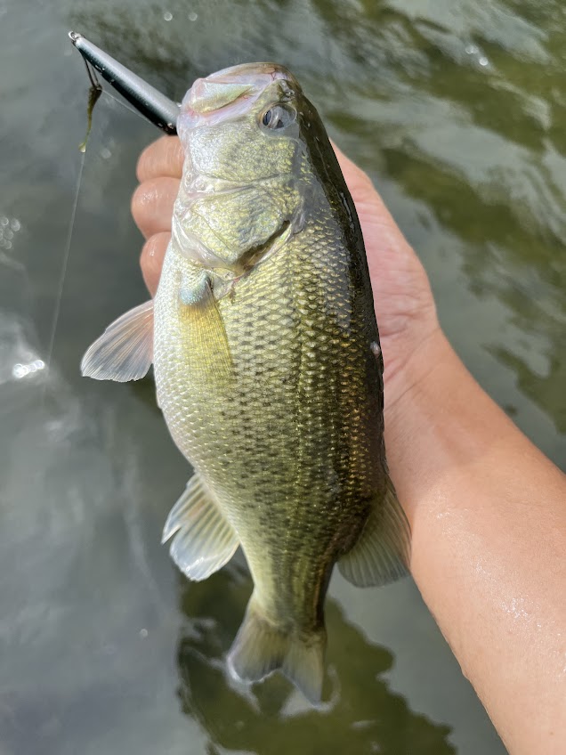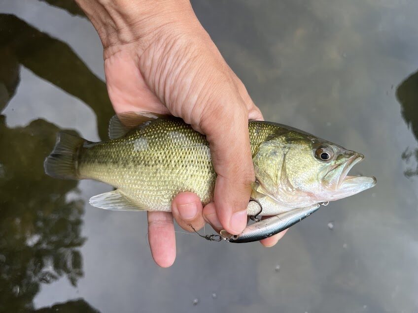 しかし、小さい魚はめちゃくちゃスレるのが早すぎて数は伸びない。10匹は釣れないで完全に何も反応がなくなって終了となる。釣れるエリアも広くないのでこのバス釣りは一日30分ぐらいの短時間勝負と言える。