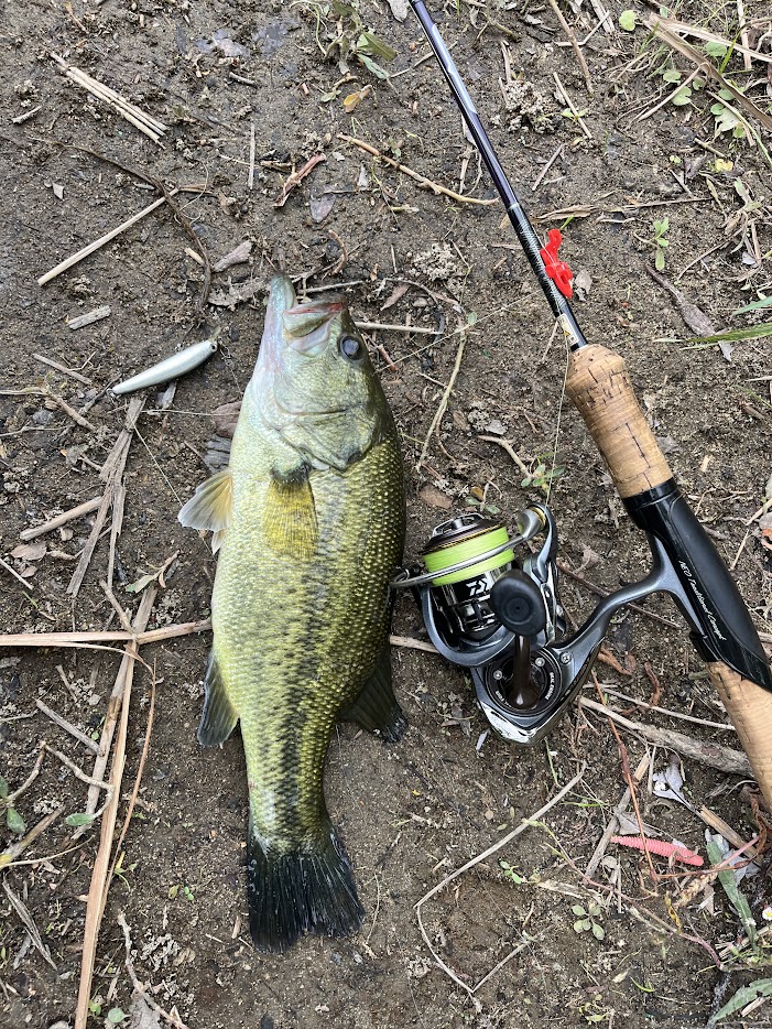 20センチ前後の小バスを狙っていたはずなのに30センチぐらいあるナイスなやつが釣れてくれた。まさかここまで成長するとは思っていなかったので驚くしか無い。