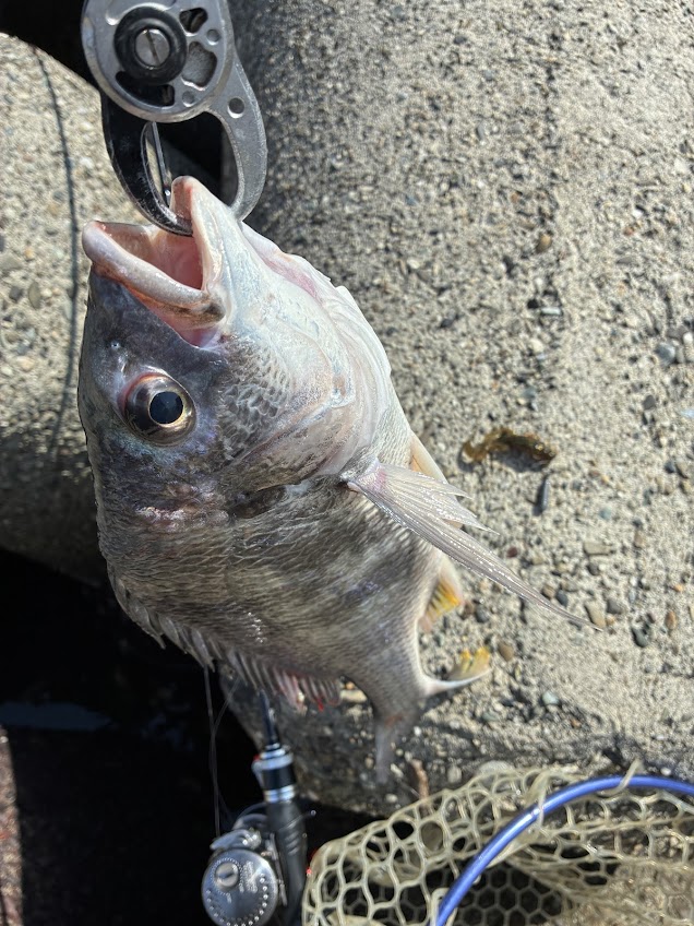 だいぶやってみたけど釣れる気配がないので帰ろうかなと思っていたところでなんか当たった気がしてもう一度同じコースを通すと重みを感じ合わせてみたら引き込まれた。かなりナイスな引きで楽しめたのが今年初めての真チヌ。