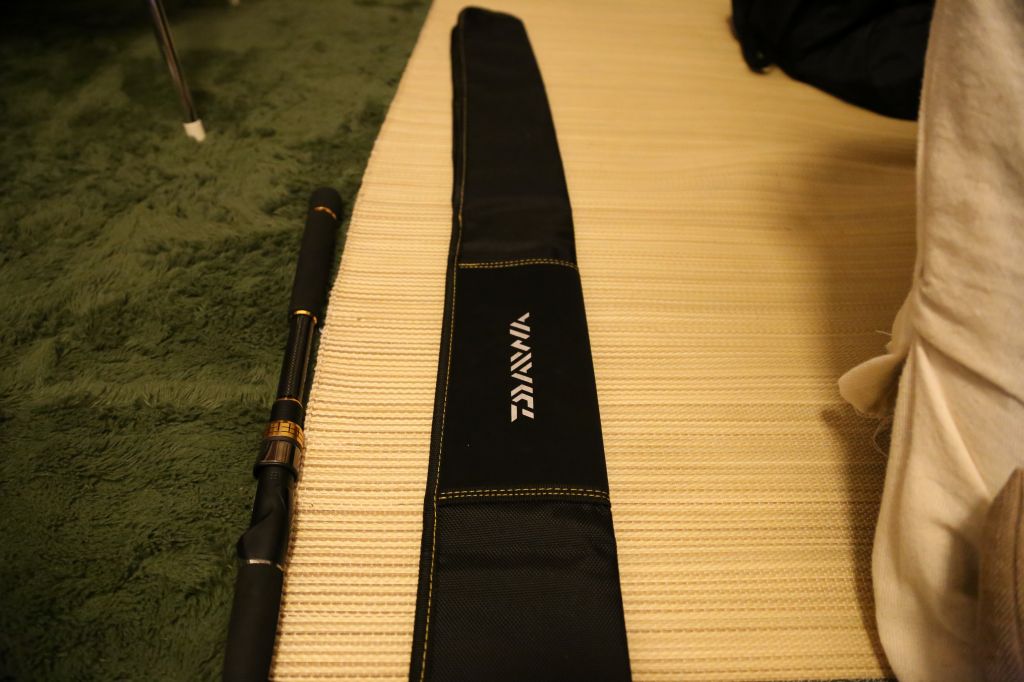 さすが最高位機種といった袋に入っている。ロッドケースだけで2000円位するんじゃないか?といえるレベルの作りなので移動の際も傷が付かない。ソフトケースなので強い衝撃には耐えられないだろうがその辺にぶつけたぐらいでは中にダメージが及ばないくらい分厚い。