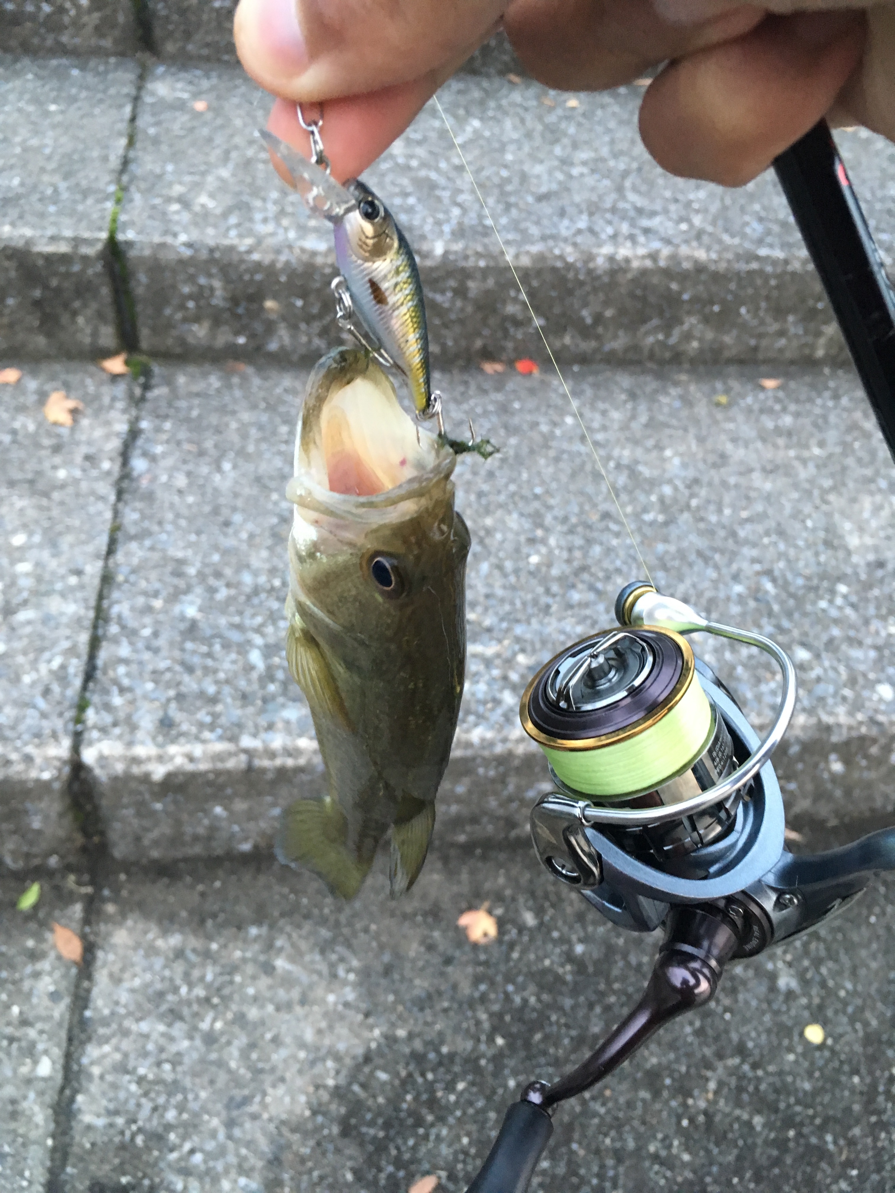 一投目から来るなんて素晴らしい!とは思ったけど案の定よく釣れている20センチくらいのチビサバちゃんがサビキ部分に食って来ただけでした。