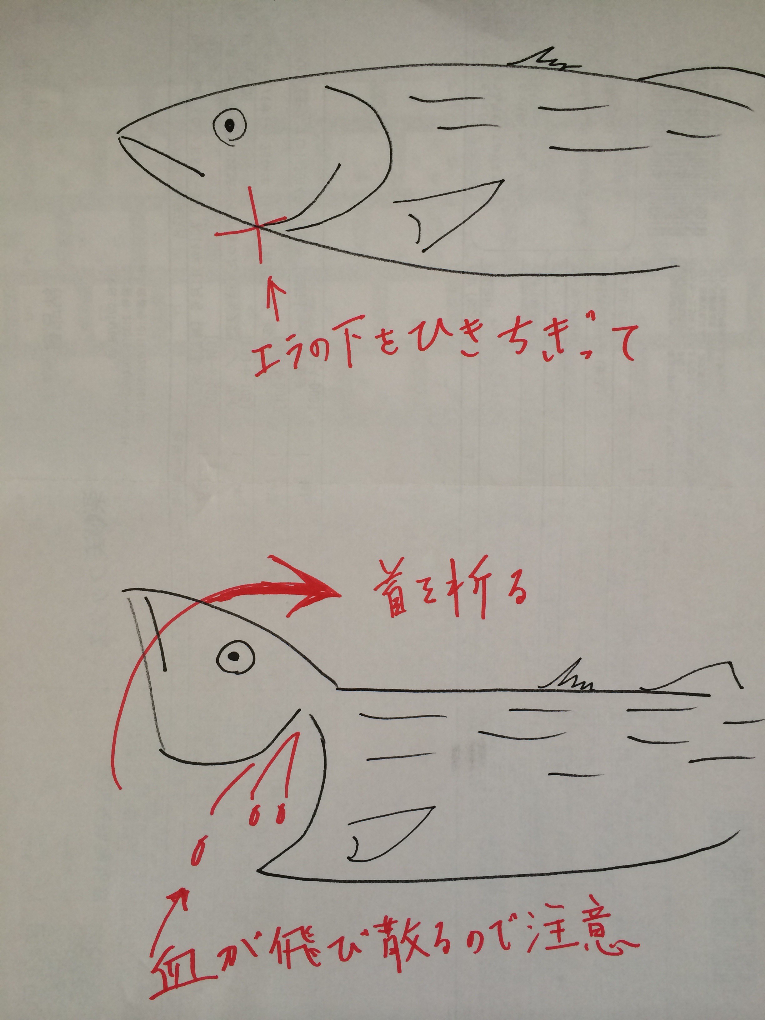 図のようにサバ折りすれば活け締め完了。