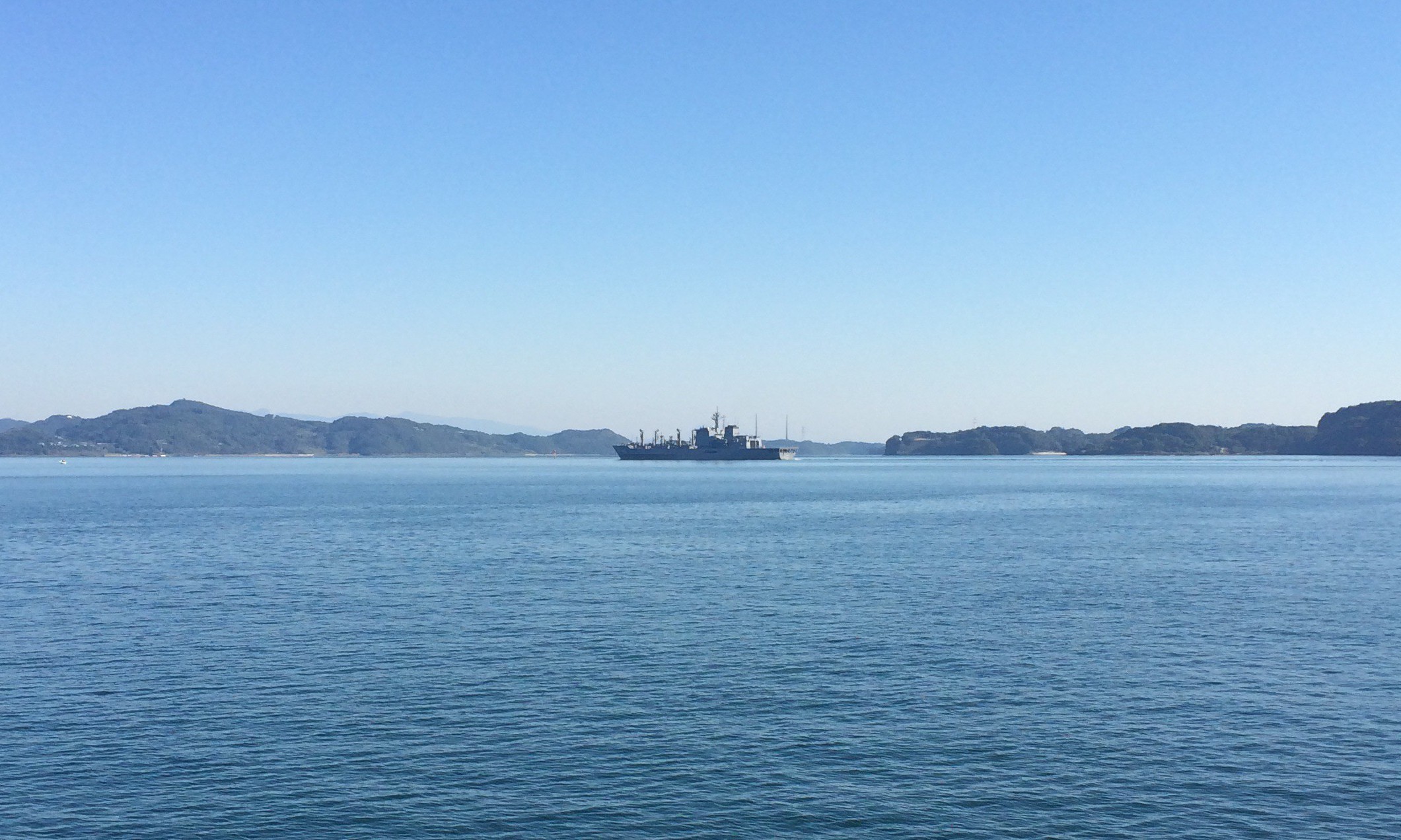 この日はなにかの演習か護衛艦が目の前を通る。ミリタリー好きの俺としては幸せすぎる釣り場。横須賀軍港めぐりとか入間の航空ショーみたいにわざわざ遠くに行かなくても釣りしながら護衛艦が眺められる幸せ。今回、佐世保港にはかなりたくさんの護衛艦があったし、米軍の基地には軽空母も停泊していた。佐世保港に住みたい・・・。