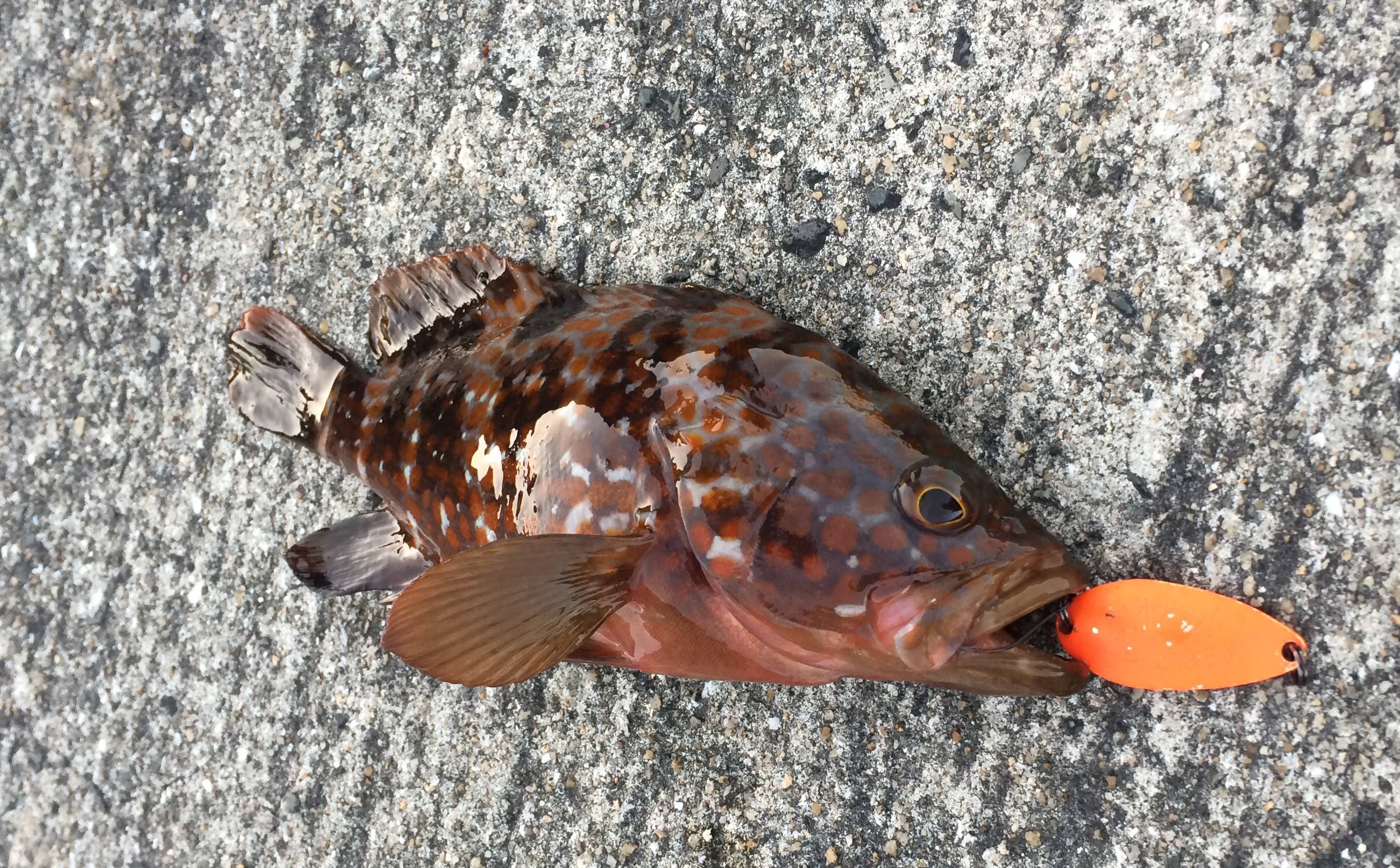 イッシーはシャローでスプーンを投げてアコウ(キジハタ)の子供をゲットしていた。