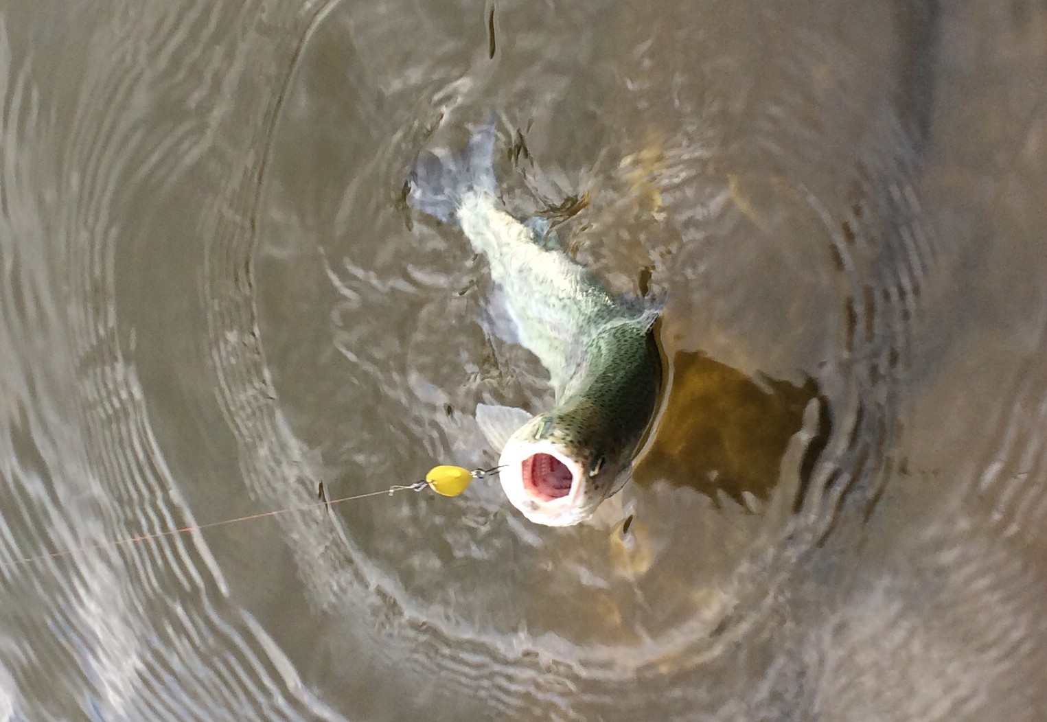 この管理釣り場はニジマスがメインの管理釣り場なのだが水質はマッディー。そのため魚のレンジはいつも表層。この管理釣り場のヒットゾーンはほとんどの場合、トップか表層直下なのである。