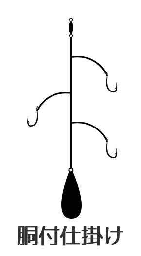 胴付じかけの場合は針が2〜3本付いた仕掛け。枝糸は5センチ程度で短めのほうが良い。カワハギ仕掛けやアナゴ仕掛けがあれば丁度良い。これも針は8〜10号程度。糸は太めでも構わない。
