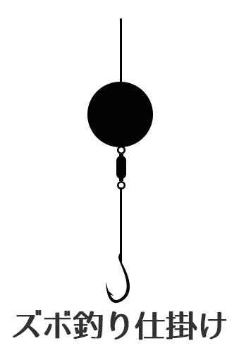 ズボ釣りの場合はシンプルな1本針仕掛け。ハリスは1〜2号を20〜30センチ程度つければ十分。針は8〜10号程度の流線針やキス針。