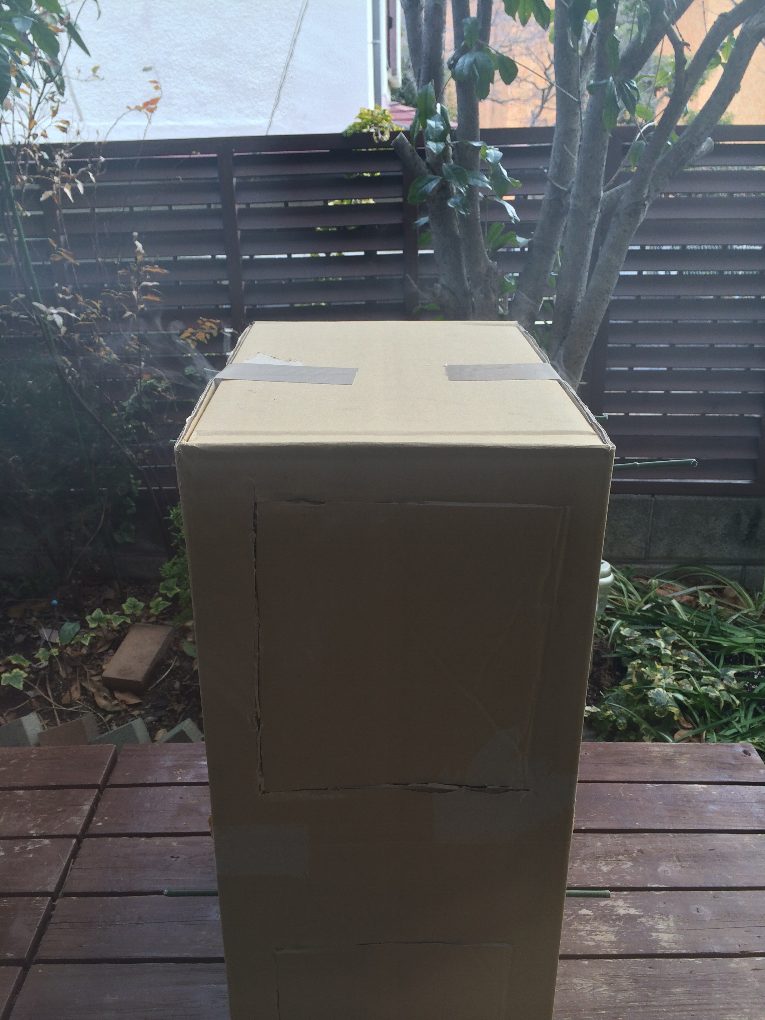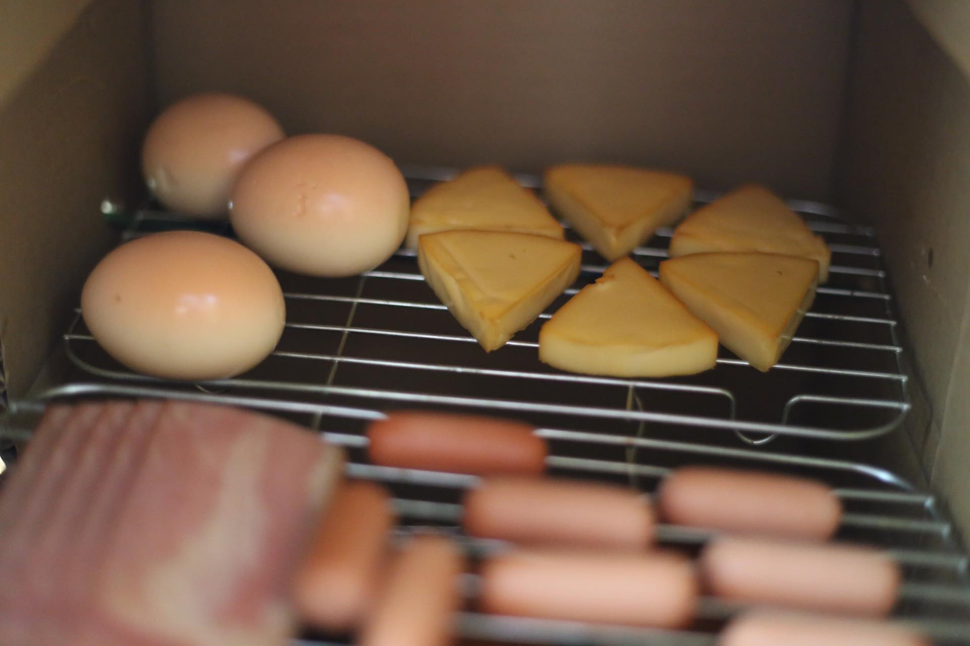 燻製マシンと言ってもただダンボールを切って棒を突っ込んだだけのシンプルな作り。