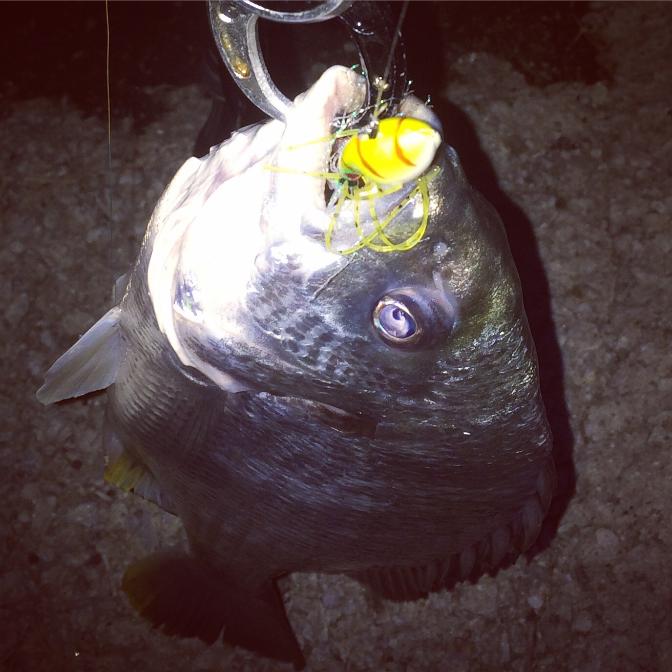 ガッチリフッキングしていたおかげで全然フックが外れず難儀したものの針をグニャグニャにして外すことが出来た。ちゃんとしたペンチは絶対必要な釣りやね。。
