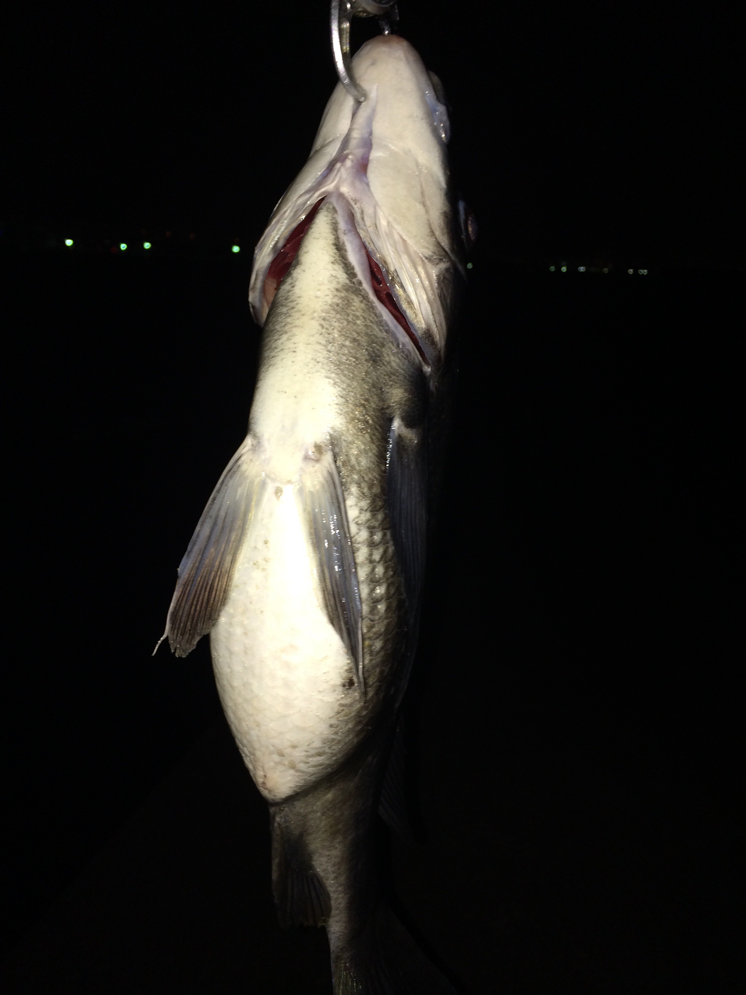 この魚はシーバスでエラ洗いを繰り返しジャンプをしまくる。上手くドラグを出していなし、徐々に寄せてきて足元でタモを取ろうとした瞬間バラシ。。。惜しい。サイズは最初のシーバスとほぼ同じサイズだった。