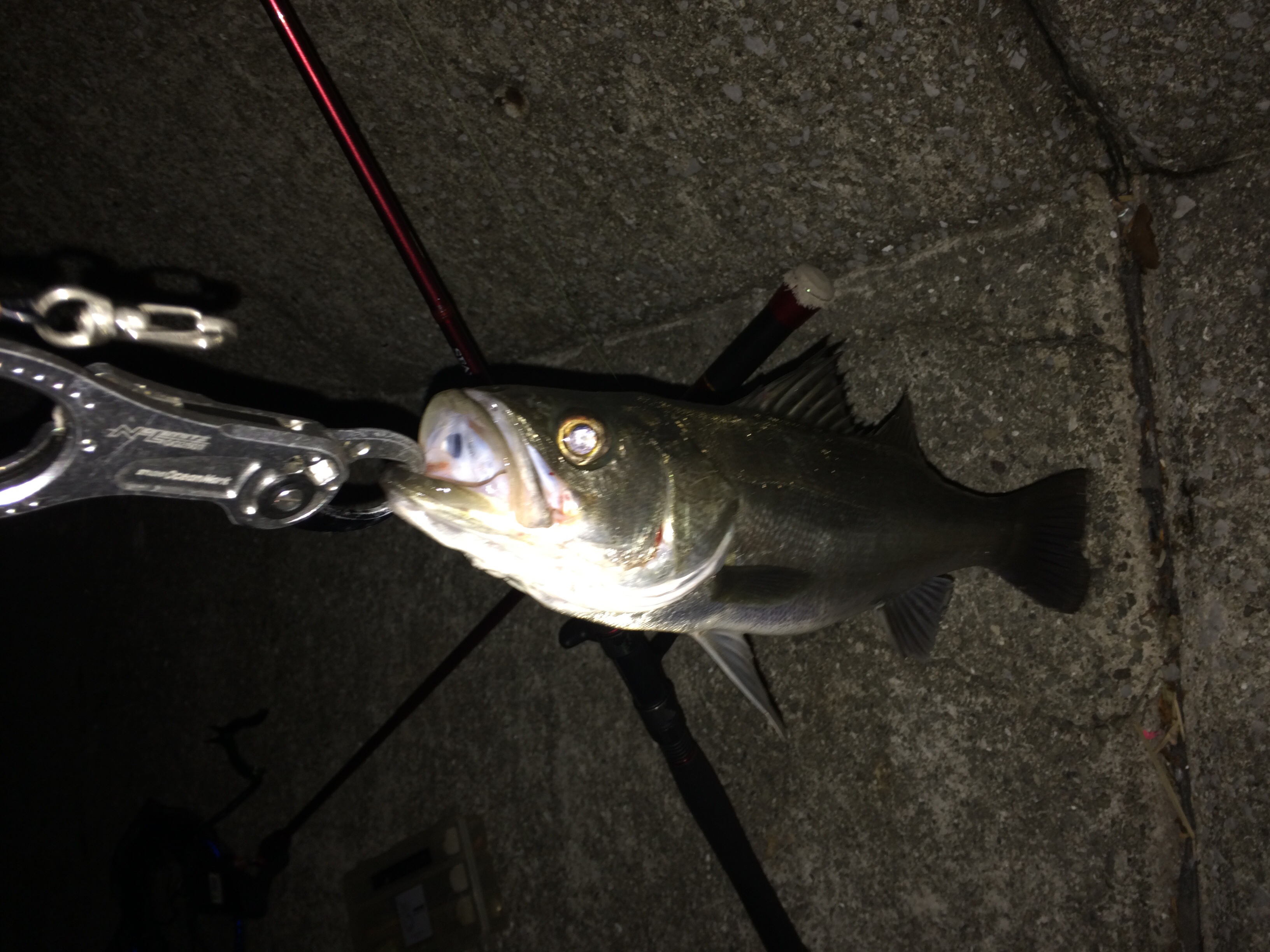 とにかくシーバスがかかりそこそこいいファイトをしたものの前の日までアジングロッドでシーバスを釣っていたことを考えるとシーバスロッドでシーバスを釣るのはそんなにヒヤヒヤするようなものではなく普通にゲット。アジングロッドでまあまあサイズのシーバスを何匹か釣るとやり取りの腕がすごい上がることに気づいた。。。
