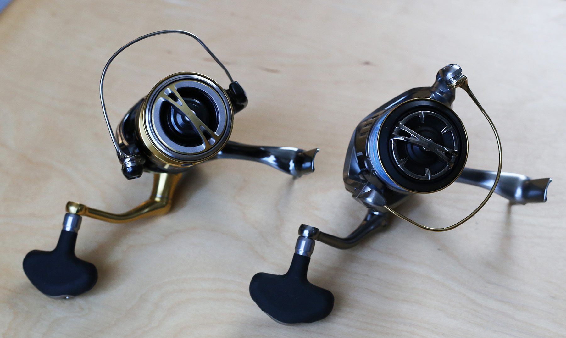 見た目は完全に違う物になっているが持ってみた感じはほとんど同じ。小さい番手だと剛性の強化による重さの違いは解らないレベル。
