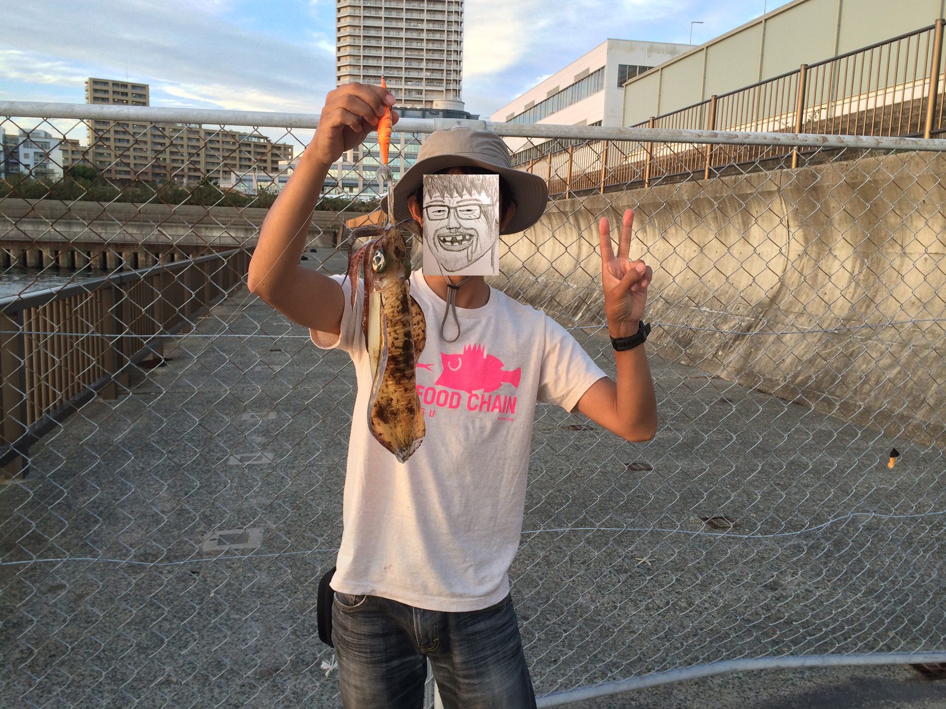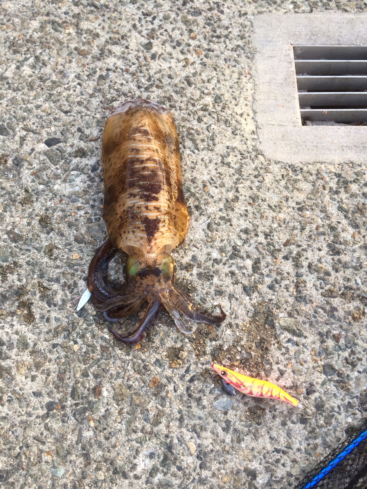 夕まずめも終わりそうな18時くらいにメタルジグを投げたりしてなんか釣れないか試していたのだが隣でエギングしていた人にアオリイカがヒット。中々サイズのアオリイカをゲットしていた。