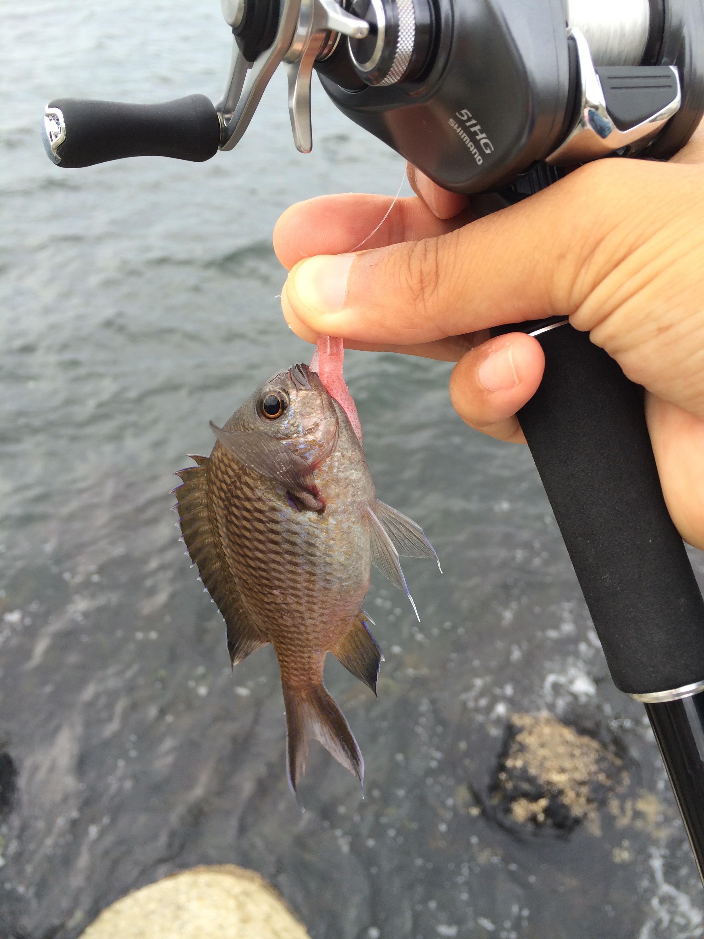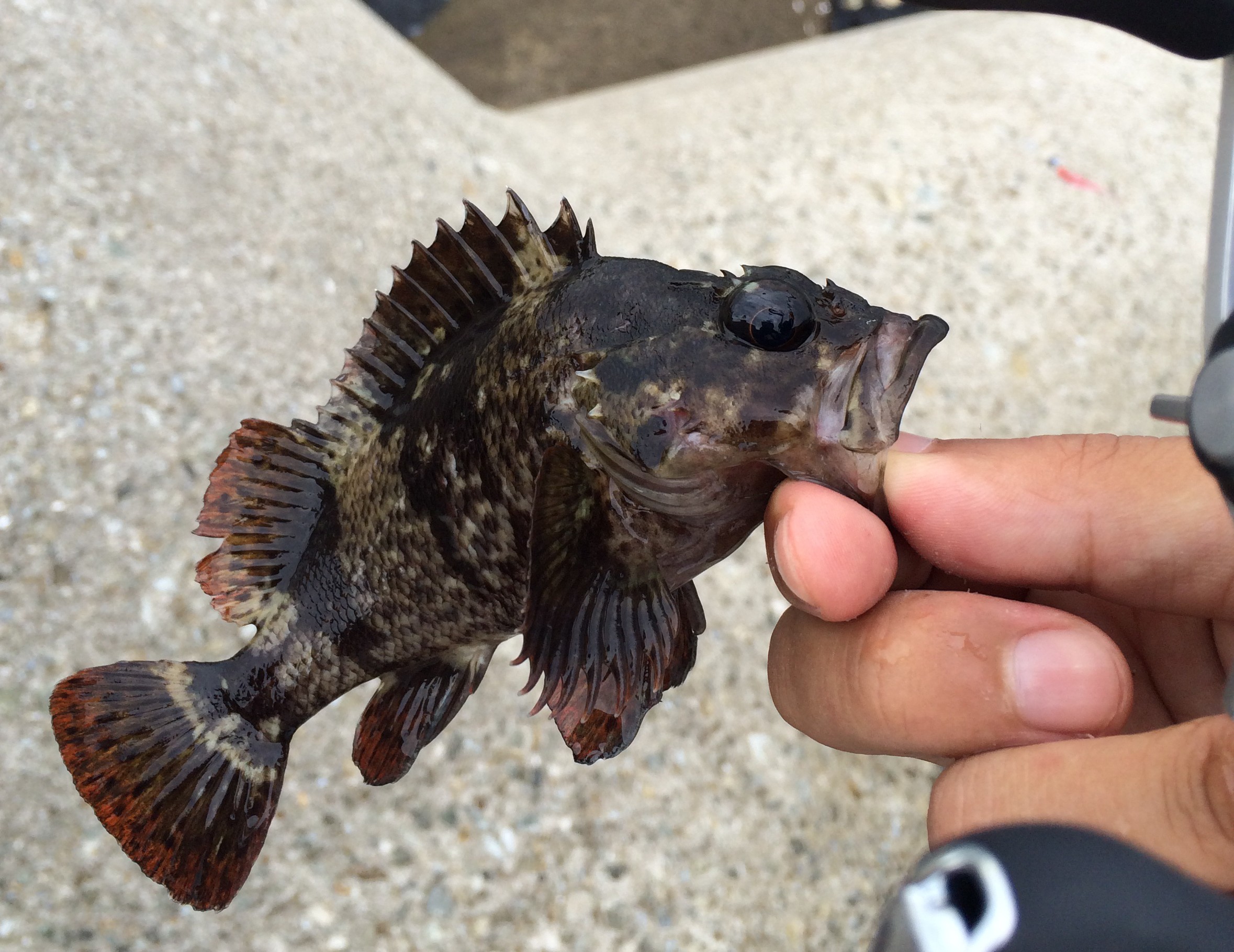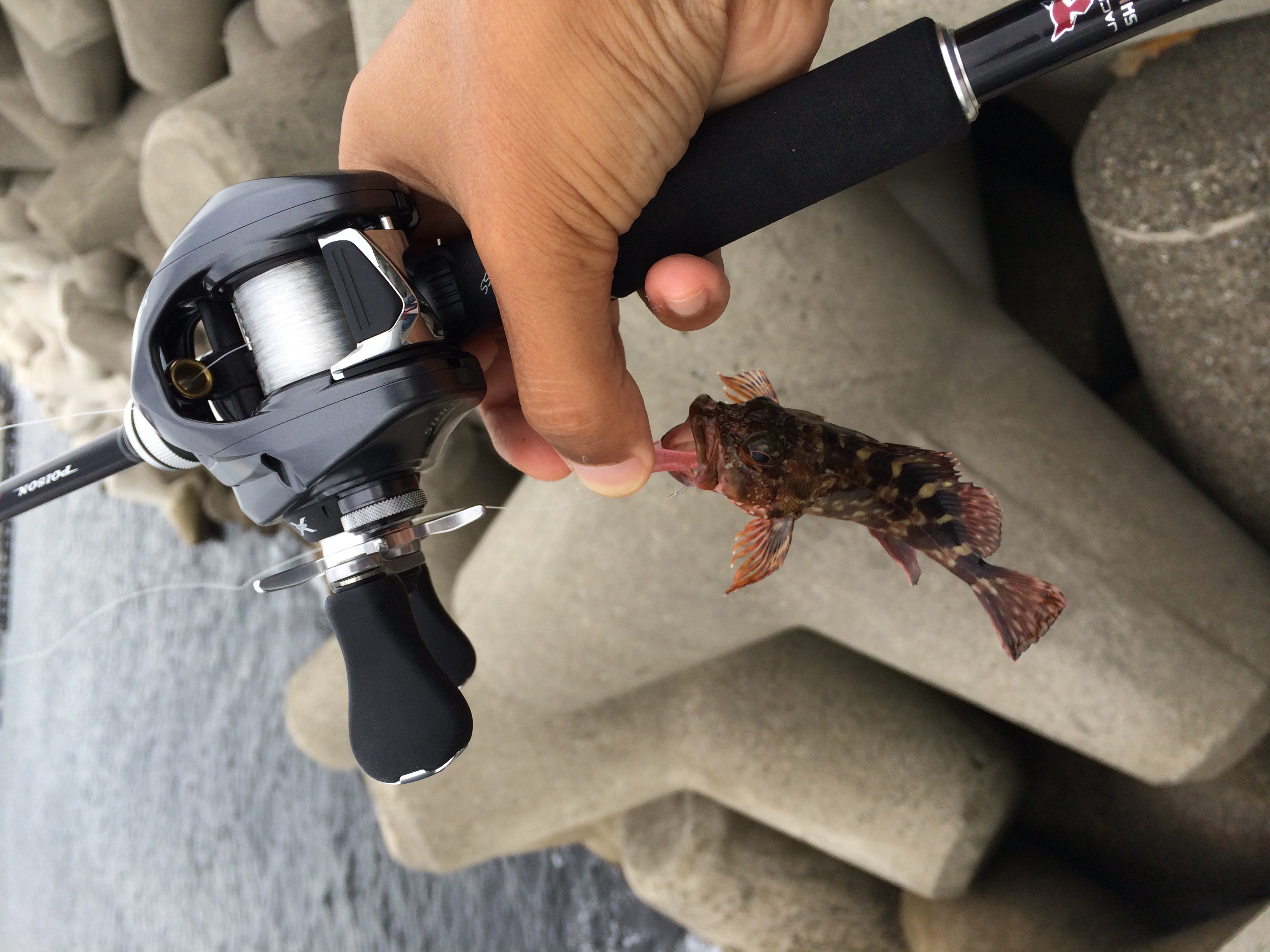 アドレナのベイトフィネスロッドと15アルデバランの組み合わせは淡路島のバス釣り以来だったがぶっちゃけ25センチのバスを釣るより穴に潜む20センチのガシラのほうがよっぽど引くので凄い楽しい。当たってから突っ込むあの引きは結構病みつき。