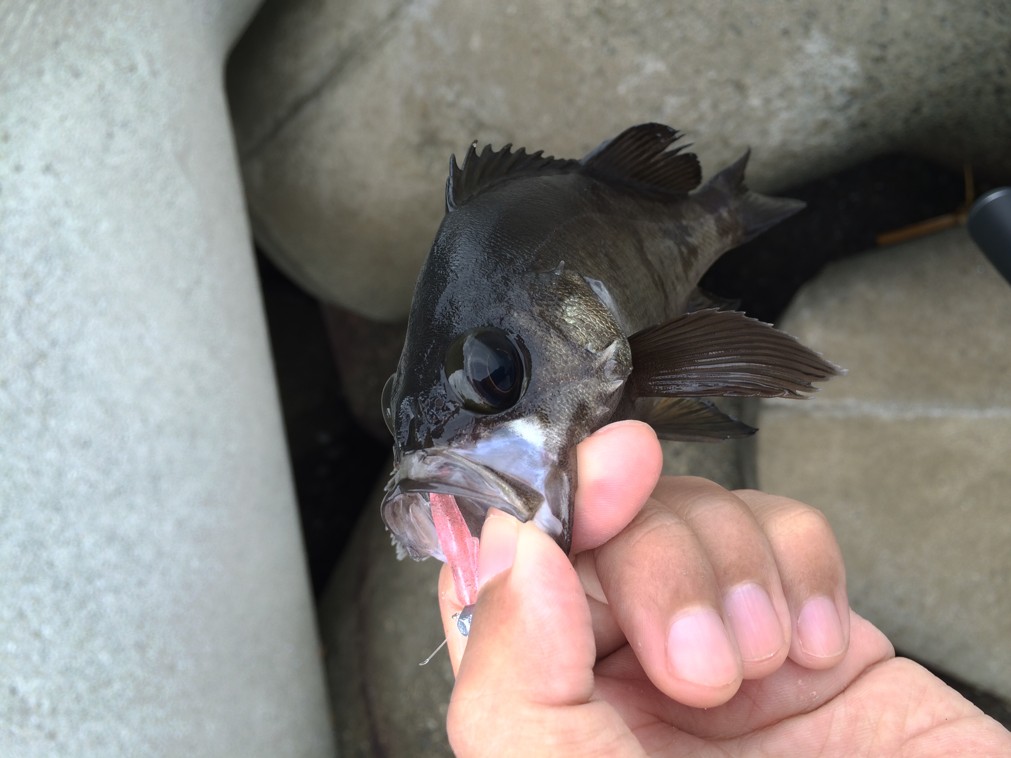 ただ、この日はローライトだったせいか穴が思ったほど炸裂せず・・・。時々良いサイズが混じるが肝心の親玉サイズはことごとくミスってバラす・・・。最後にミラクルサイズのメバルをバラし疲れたの終了とした。