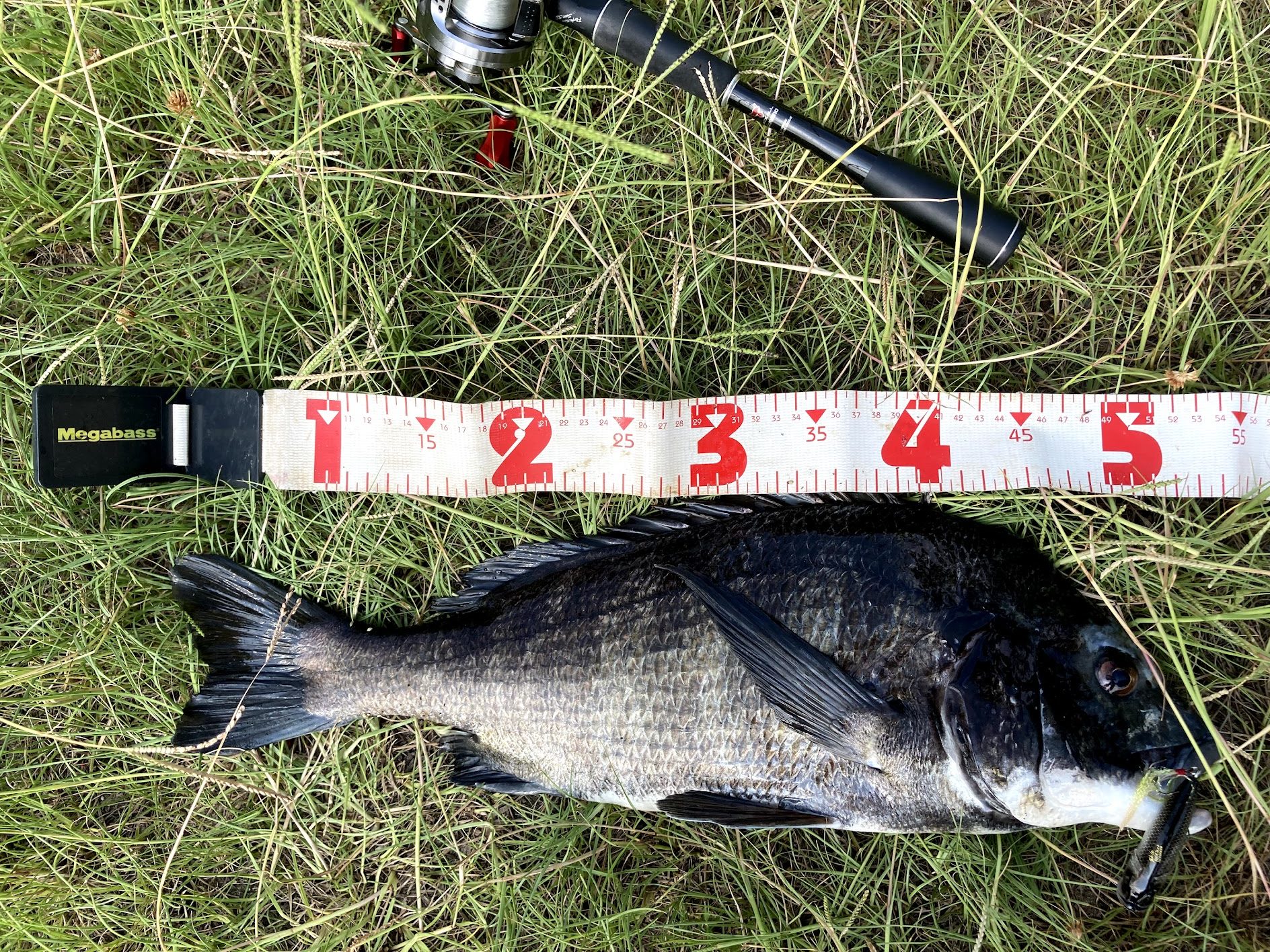 ちなみに7LBのフロロカーボンラインは2キロ近くまで持ち上げることが出来るため40センチクラスのキビレなら軽く抜きあげることが出来る。パワーの有るタックルのメリットの一つ。