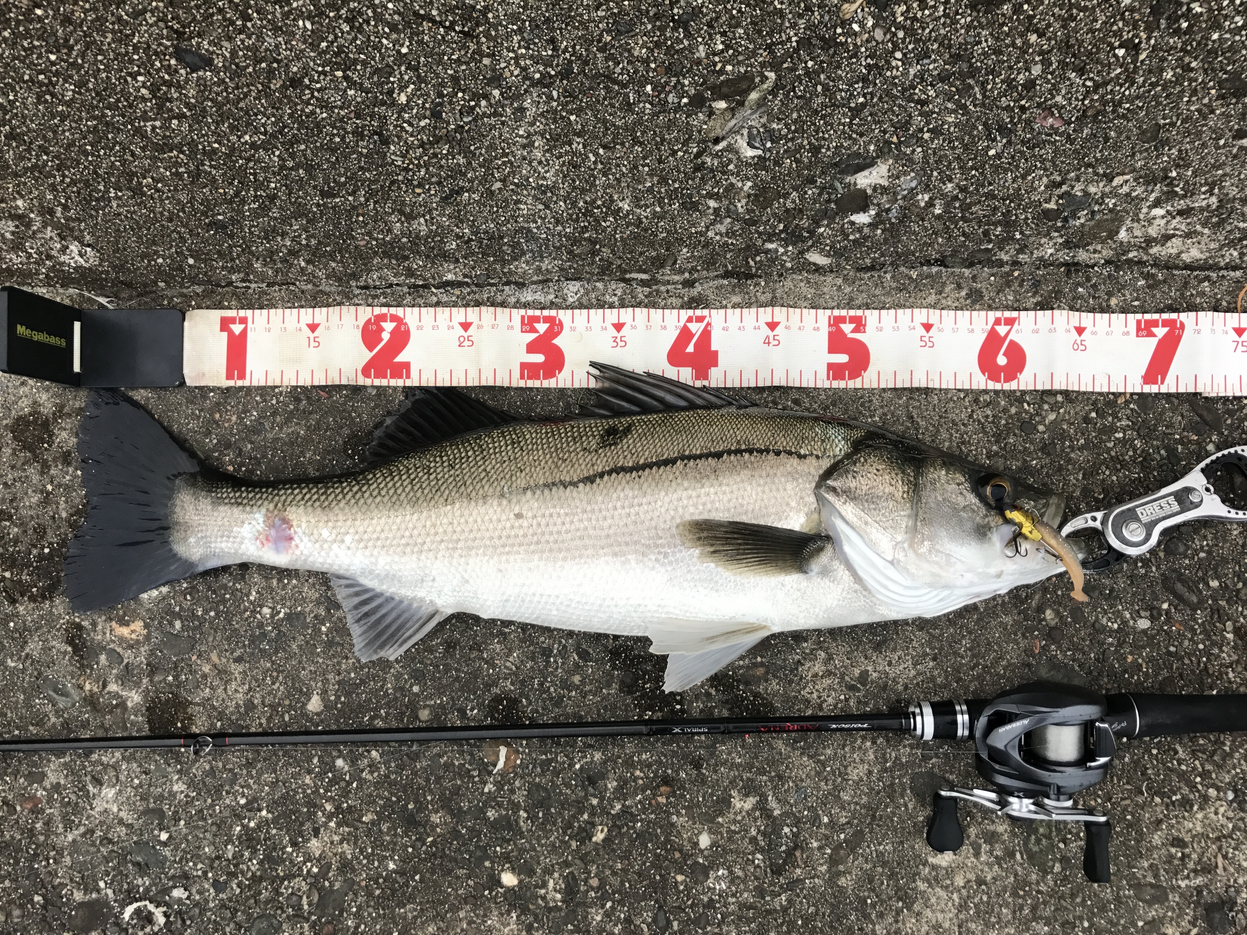 40センチクラスのキビレを数匹釣ってみたがパワー的には全く問題ない。ドラグフルロックでやりとりしたが7LBのフロロカーボンは全く切れる心配は感じず。根が荒い場所の場合は根ズレが心配なので無理をしないほうが得策。