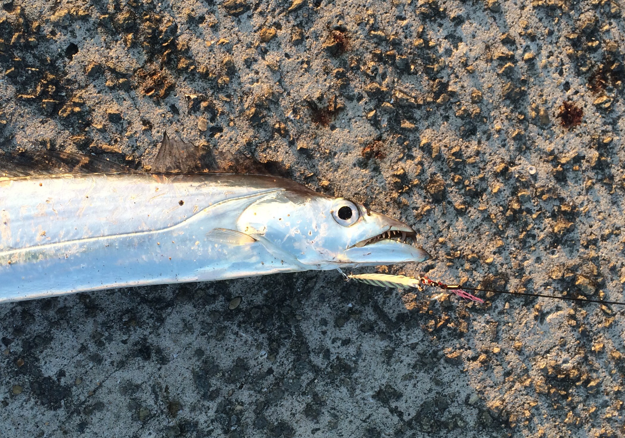 その後も暗くなるまでやってみたが風は少しだけ弱くなったものの吹き続けているし大きめのタチウオ2本ゲット出来たしもういいかってことで夜を待たずに終了とした。